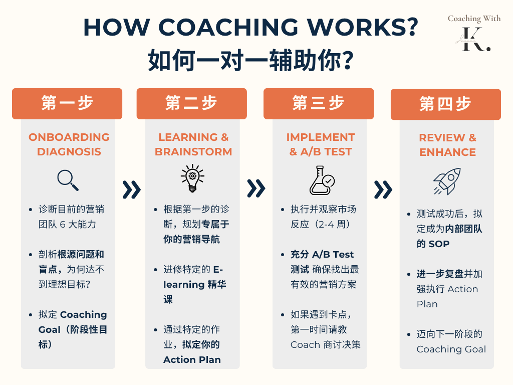 直到 2023 年,我开创了 Coaching with Joanne K. 的营销团队一对一指导,将自己 15 年带领营销团队突破业绩的管理心得,通过 1-on-1 Coaching 的方式,辅助企业建立属于公司的高利润 Marketing Team。